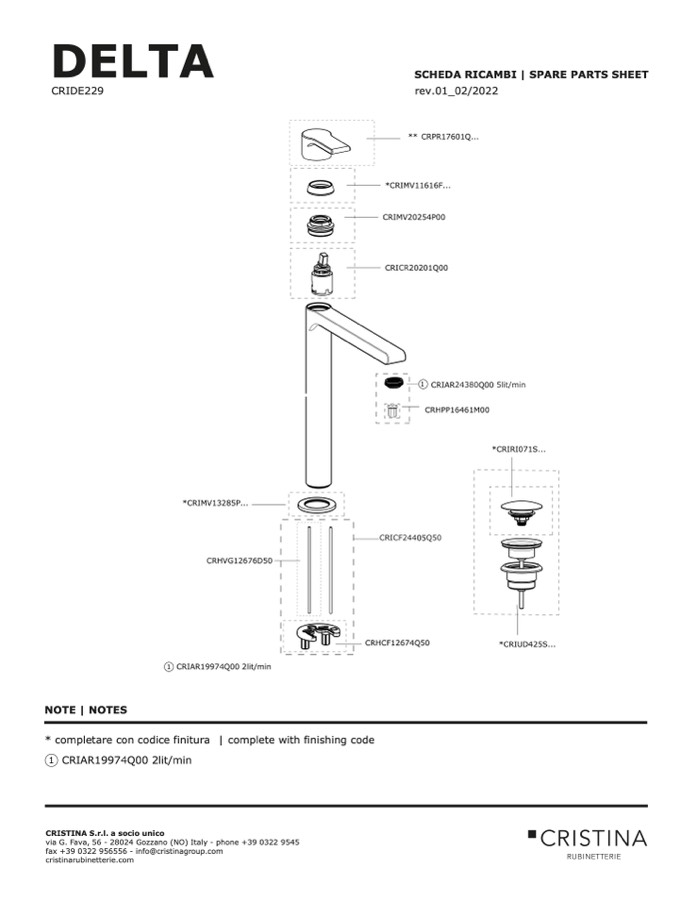 SCHEDA RICAMBI | SPARE PARTS SHEET