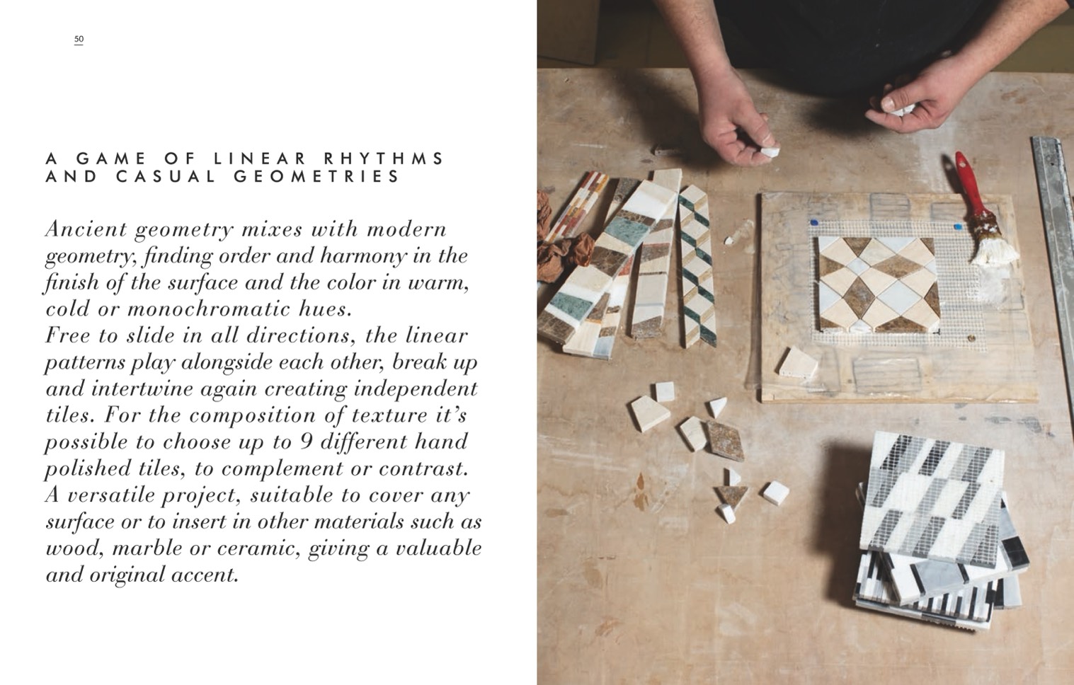 wood, marble or ceramic, giving a valuable