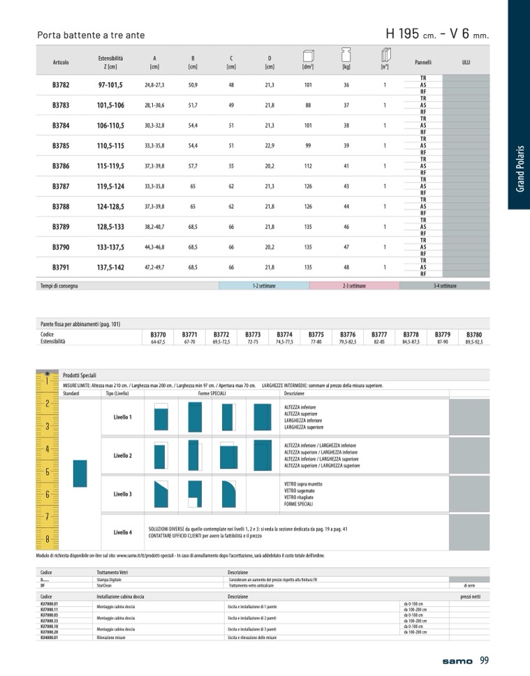 Modulo di richiesta disponibile on-line sul sito: www.samo.it/it/prodotti-speciali - In caso di annullamento dopo l’accettazione, sar