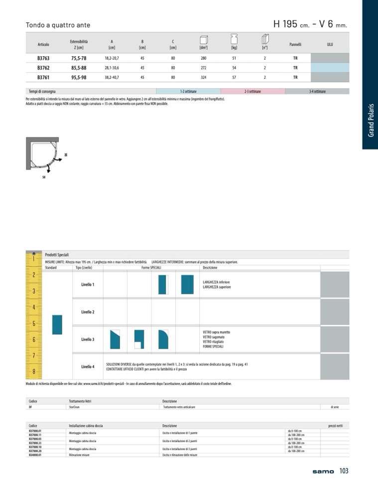 Modulo di richiesta disponibile on-line sul sito: www.samo.it/it/prodotti-speciali - In caso di annullamento dopo l’accettazione, sar