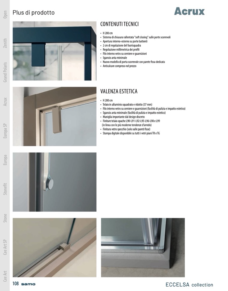 • Filo interno vetro su cerniere e guarnizioni (facilità di pulizia e impatto estetico)