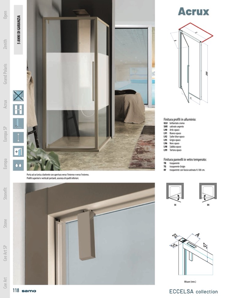 Profili superiori e verticali portanti, assenza di quelli inferiori.