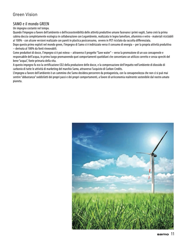 Dopo questo primo exploit nel mondo green, l’impegno di Samo si è indirizzato verso il consumo di energia – per la propria attività produttiva