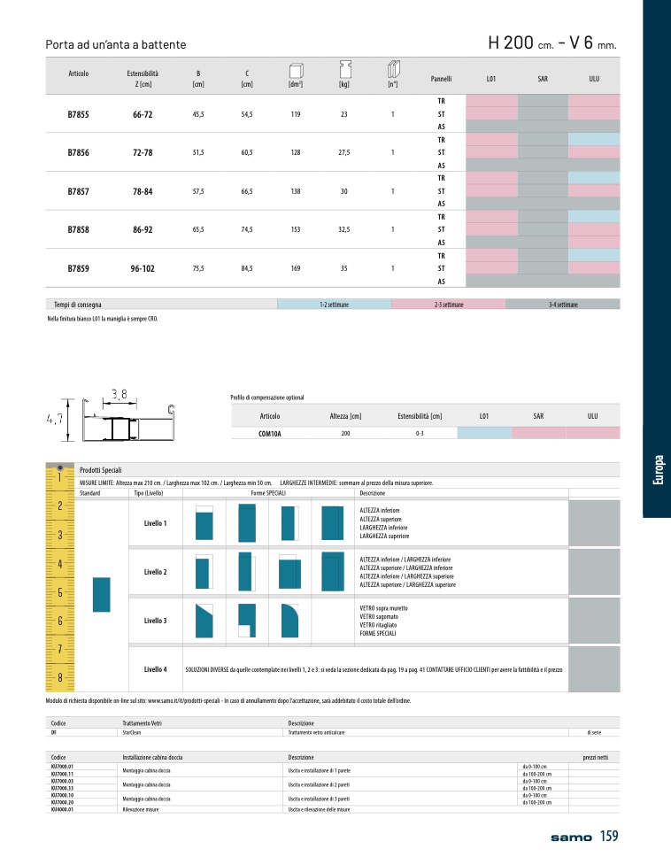 Modulo di richiesta disponibile on-line sul sito: www.samo.it/it/prodotti-speciali - In caso di annullamento dopo l’accettazione, sar