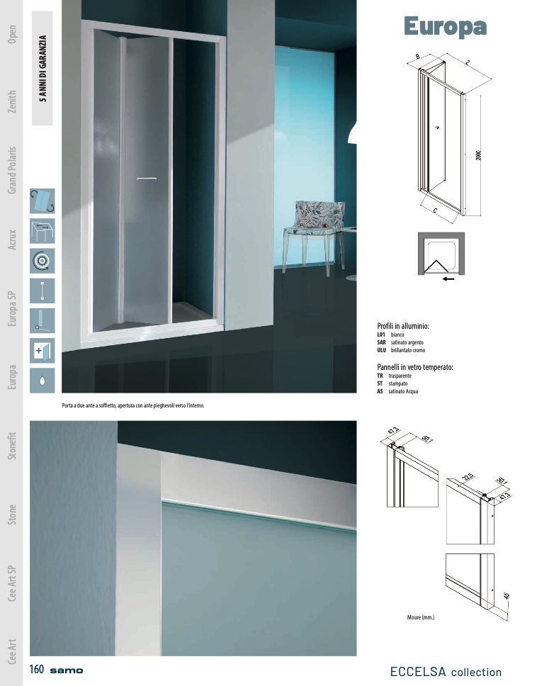 Porta a due ante a soffietto, apertura con ante pieghevoli verso l’interno.