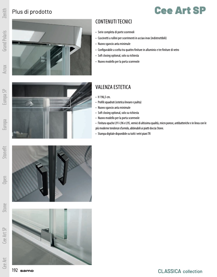 • Finitura opache L91-L96 e L95, vernici di altissima qualità, micro porose, antibatteriche e in linea con le