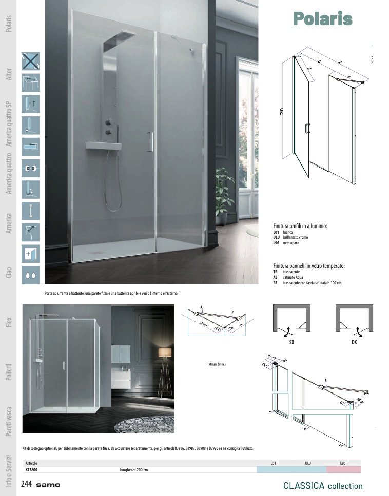 Kit di sostegno optional, per abbinamento con la parete fissa, da acquistare separatamente, per gli articoli B3986, B3987, B3988 e B3990 se ne consiglia l’utilizzo.