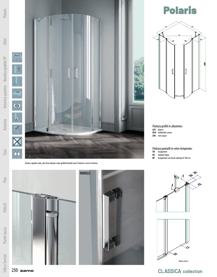 Tondo a quattro ante, due fisse laterali e due apribili frontali verso l'interno e verso l'esterno.