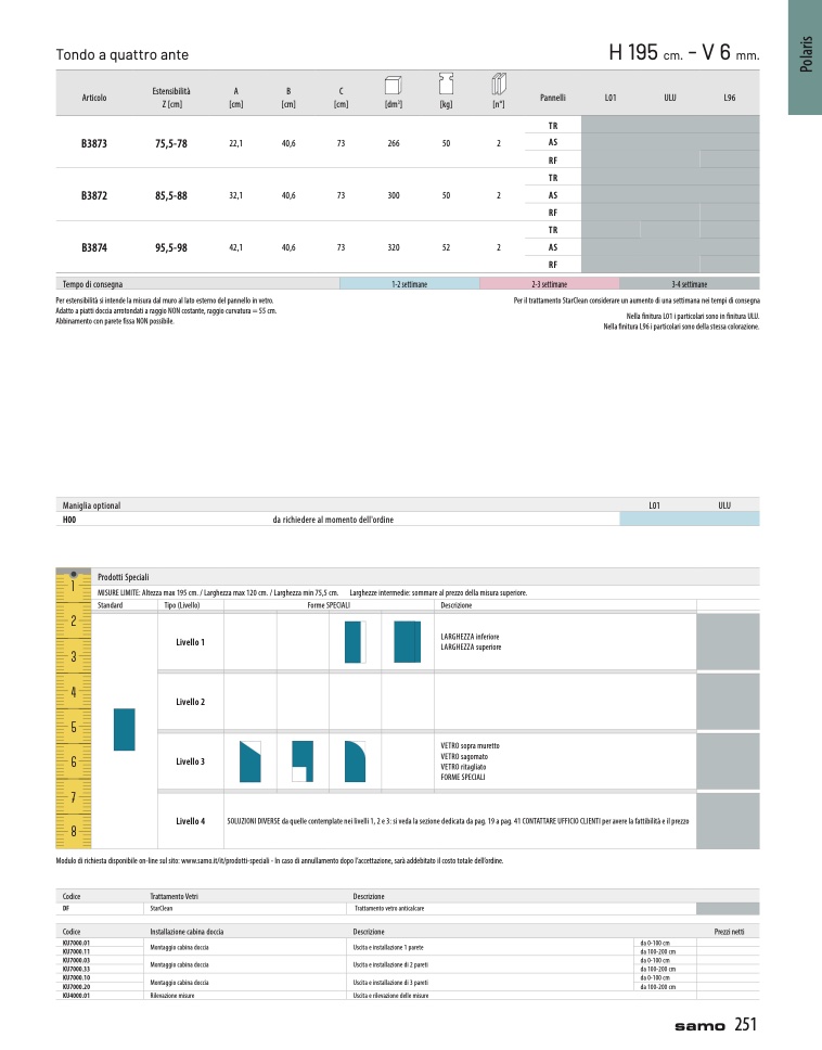 Modulo di richiesta disponibile on-line sul sito: www.samo.it/it/prodotti-speciali - In caso di annullamento dopo l’accettazione, sar