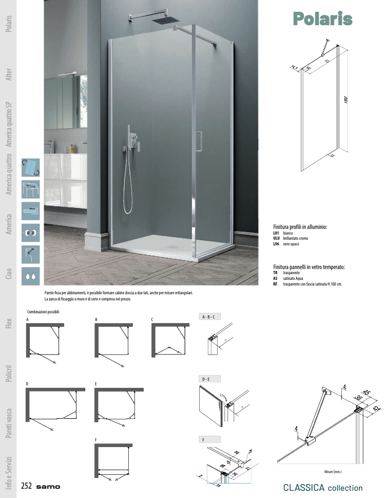 Parete fissa per abbinamenti, è possibile formare cabine doccia a due lati, anche per misure rettangolari.