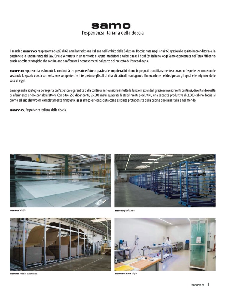 giorno ed uno showroom completamente rinnovato, samo è riconosciuta come assoluta protagonista della cabina doccia in Italia e nel mondo.