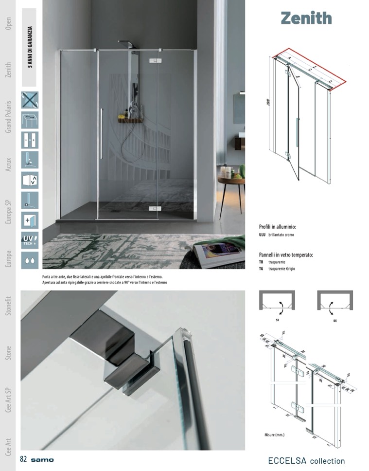 Apertura ad anta ripiegabile grazie a cerniere snodate a 90° verso l'interno e l’esterno