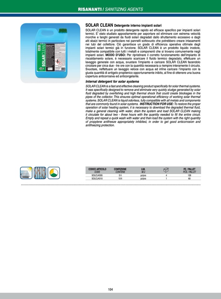 SOLAR CLEAN is a fast and effective cleaning product specifically for solar thermal systems.