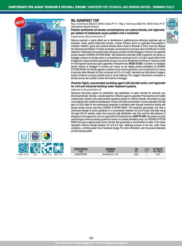 SANItIZZANtI PEr ACQUE tECNICHE E PotABILI, PISCINE / SANITIZERS FOR TECHNICAL AND DRINKING WATERS - SWIMMING POOLS