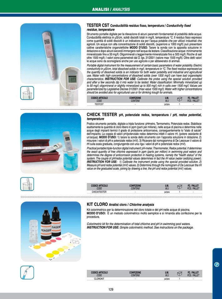 un’acqua). MODO D’USO: 1) tarare la sonda dello strumento con l’apposita soluzione in dotazione. 2)