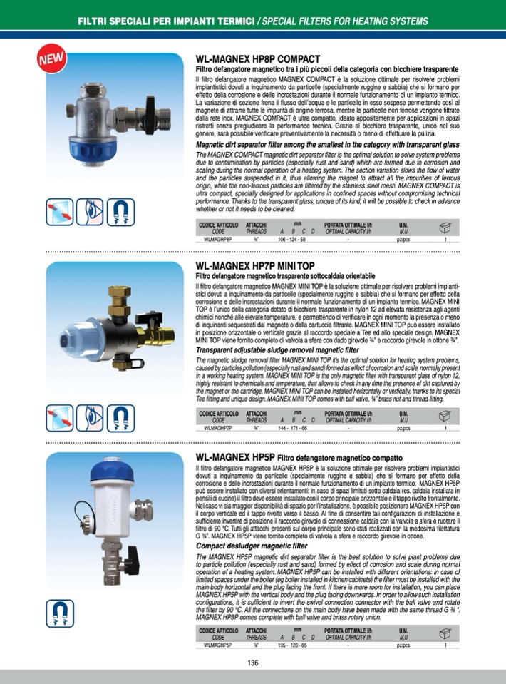 in a working heating system. MAGNEx MINI TOP is the only magnetic filter with transparent glass of nylon 12,