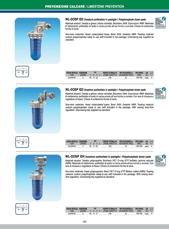 (nBr). materiale di trattamento: polifosfato di sodio in carica pronta all’uso fornito a corredo. Con