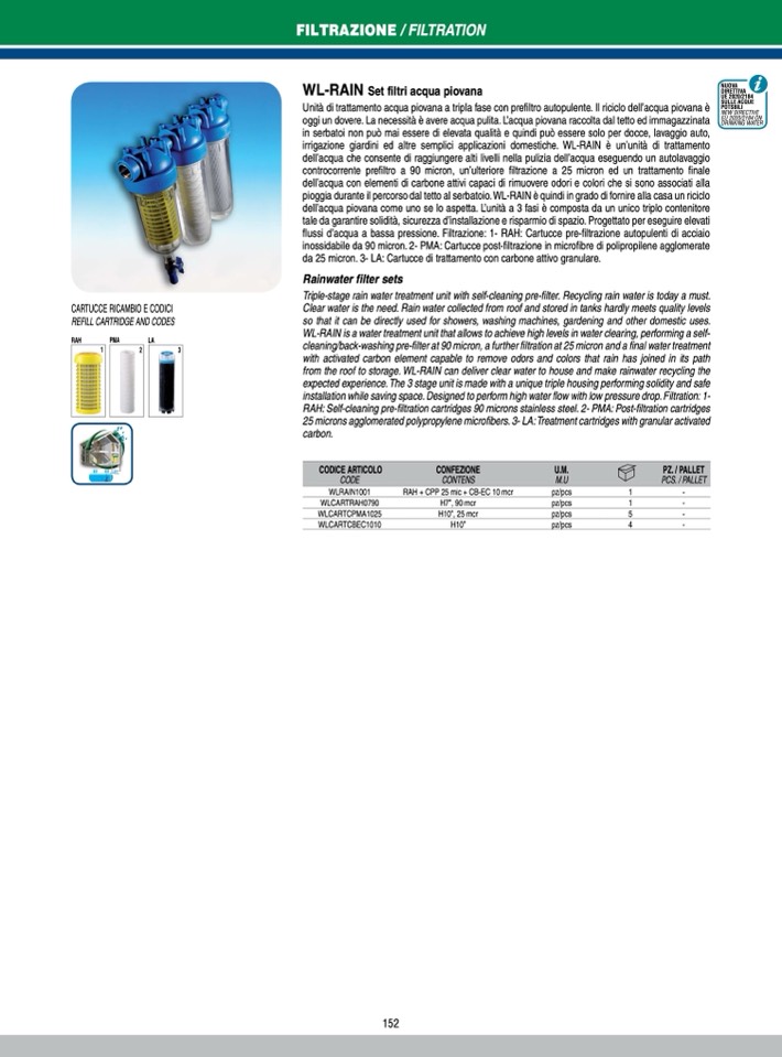 irrigazione giardini ed altre semplici applicazioni domestiche. WL-rAIn è un’unità di trattamento