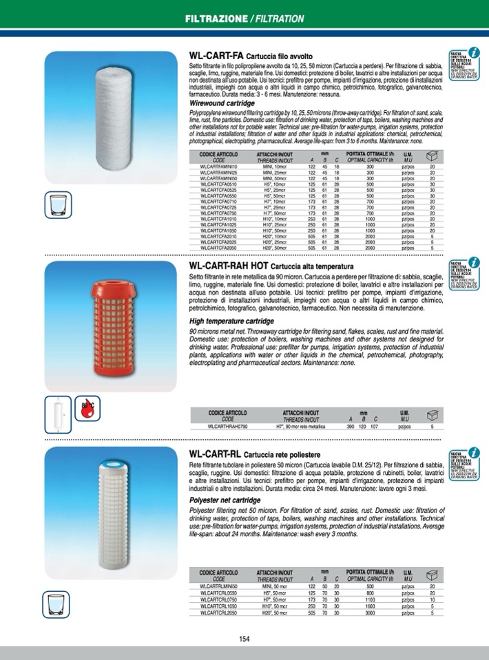 lime, rust, fine particles. Domestic use: filtration of drinking water, protection of taps, boilers, washing machines and