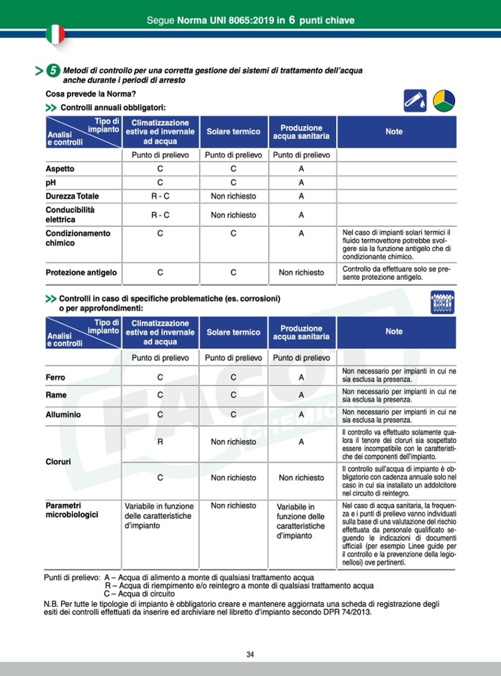 Punti di prelievo: A – Acqua di alimento a monte di qualsiasi trattamento acqua