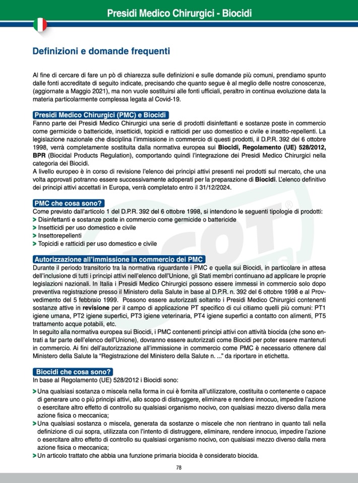 BPR (Biocidal Products regulation), comportando quindi l’integrazione dei Presidi medico Chirurgici nella