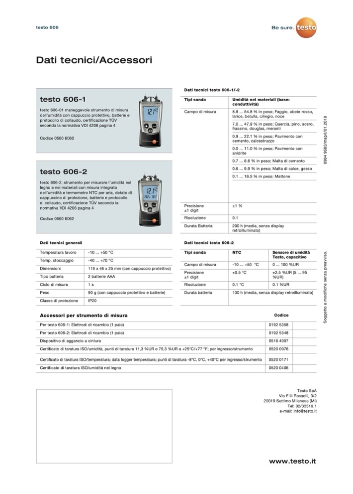 Dati tecnici testo 606-1/-2