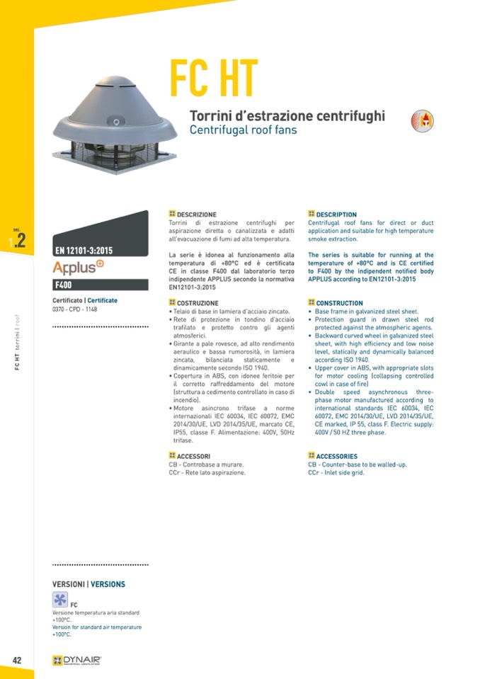 IP55, classe F. Alimentazione: 400V, 50Hz