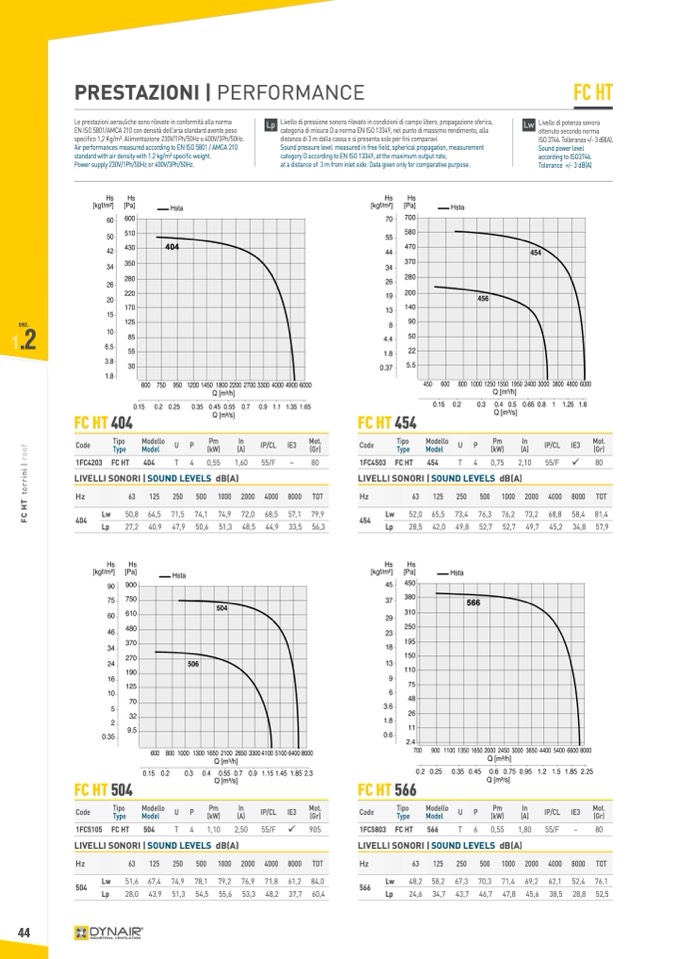 EN ISO 5801/AMCA 210 con densità dell’aria standard avente peso