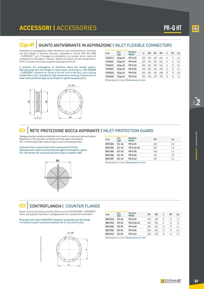 – EUROVENT standard for fixing to the fan and to the duct, and a strong