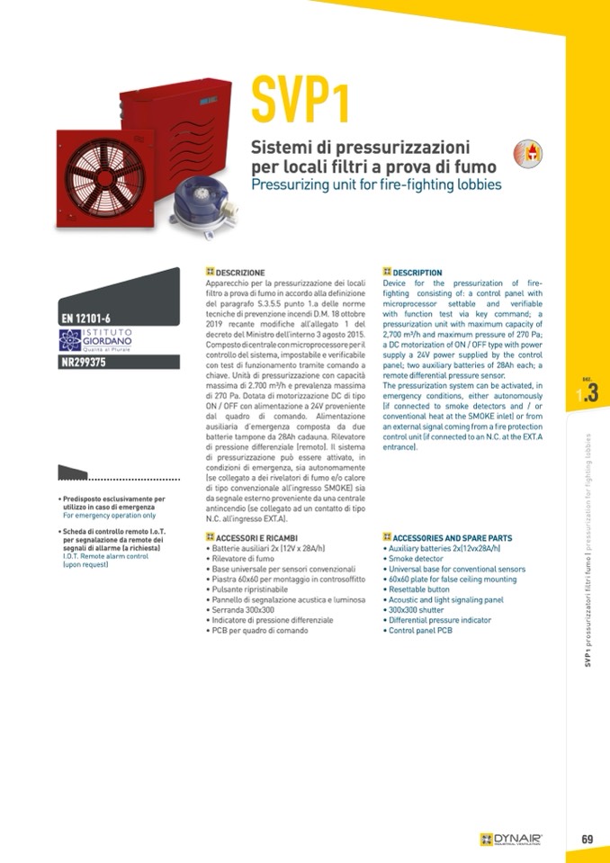 2,700 m3/h and maximum pressure of 270 Pa;