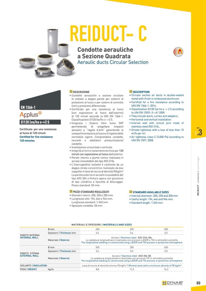 • Circular section air ducts in double-walled