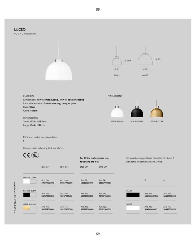 pendants in both black and white.