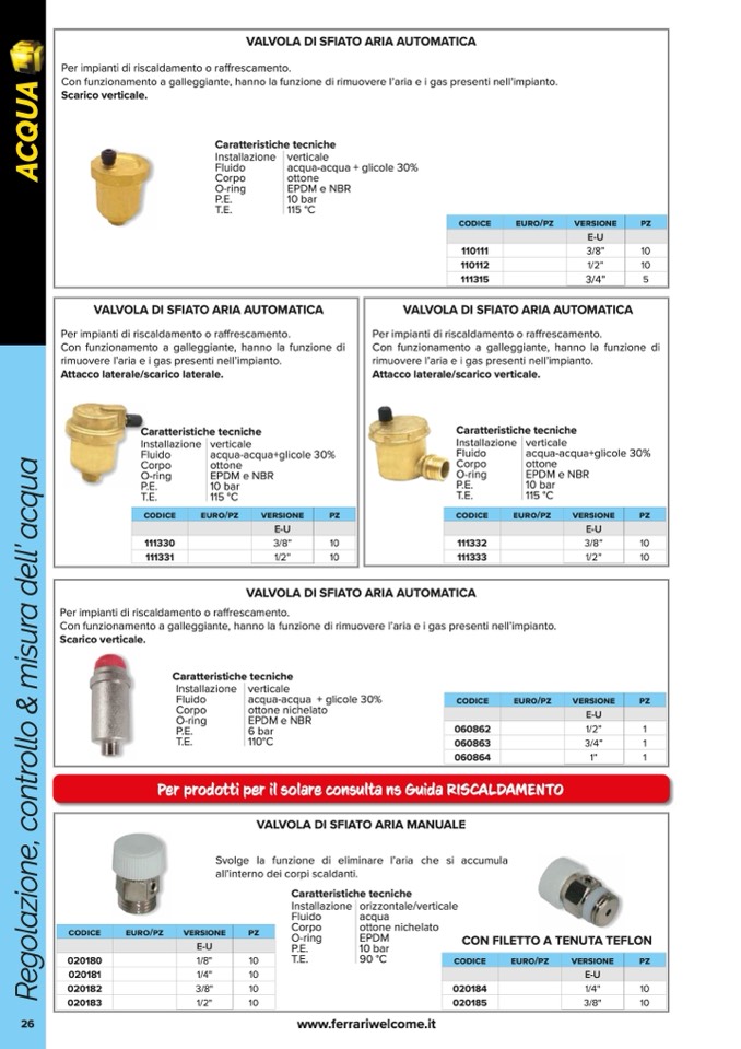 Per prodotti per il solare consulta ns Guida RISCALDAMENTO