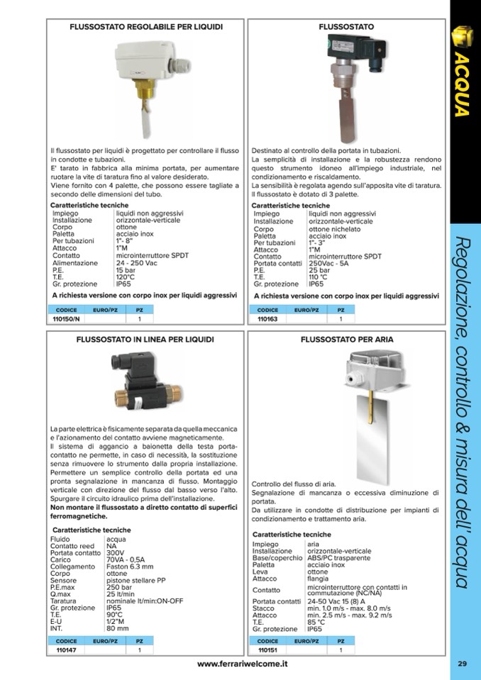 FLUSSOSTATO REGOLABILE PER LIQUIDI