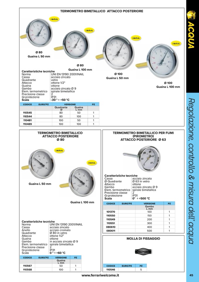TERMOMETRO BIMETALLICO ATTACCO POSTERIORE