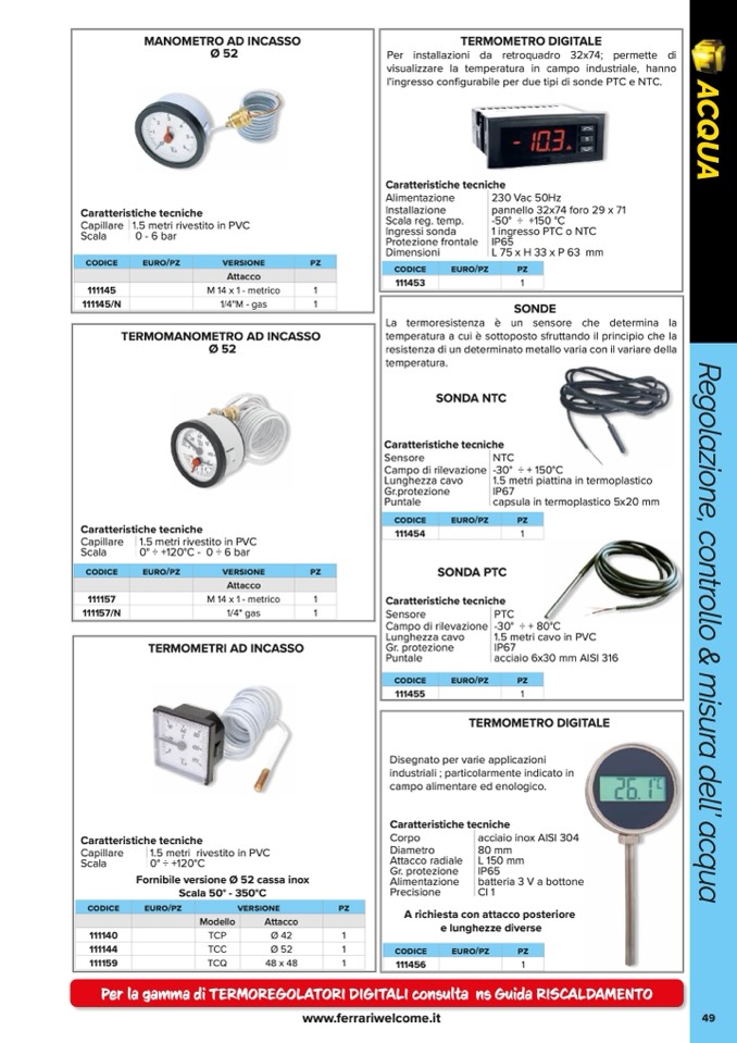 Per la gamma di TERMOREGOLATORI DIGITALI consulta ns Guida RISCALDAMENTO