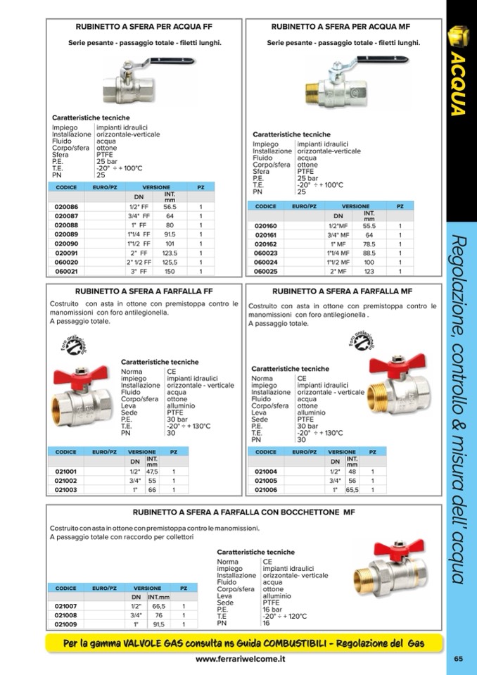 Per la gamma VALVOLE GAS consulta ns Guida COMBUSTIBILI - Regolazione del Gas