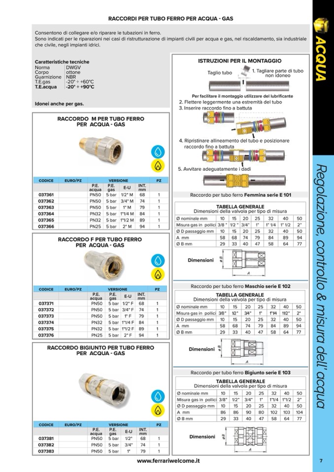 Misura gas in pollici 3/8 ” 1/2 ” 3/4” 1” 1” 1/4 1” 1/2 2”