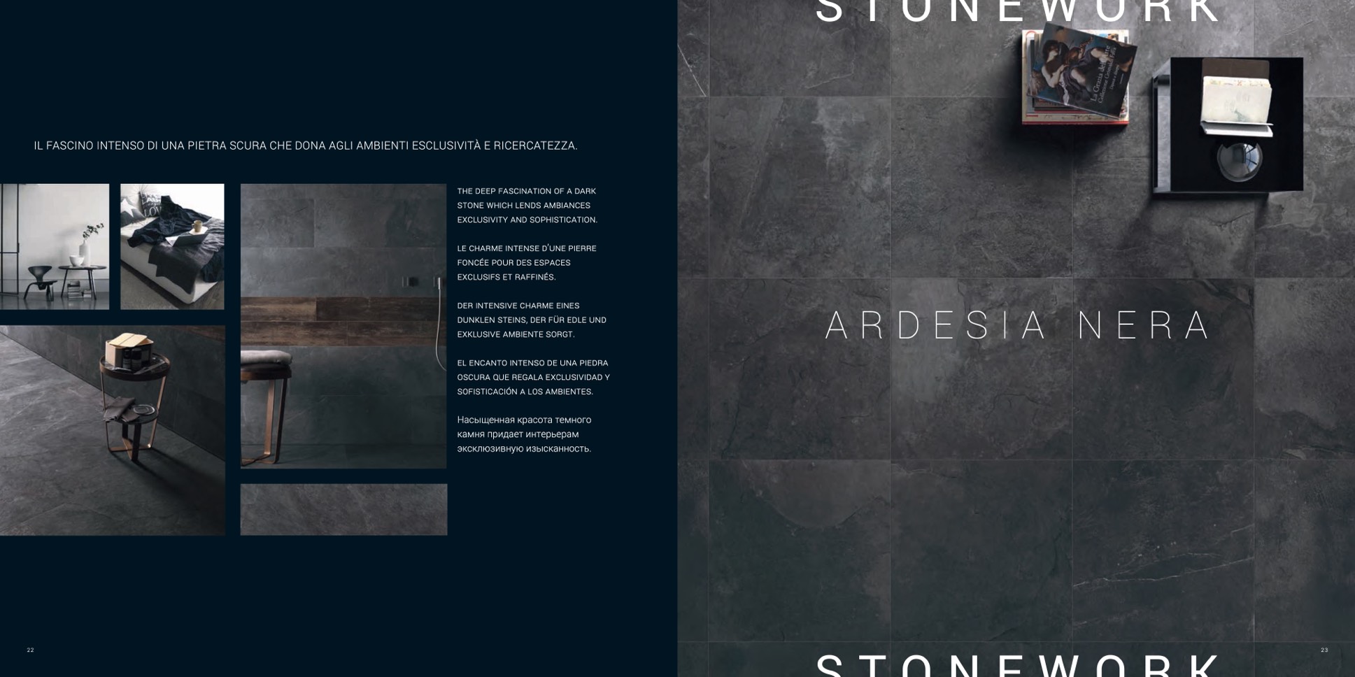 IL FASCINO INTENSO DI UNA PIETRA SCURA CHE DONA AGLI AMBIENTI ESCLUSIVITÀ E RICERCATEZZA.