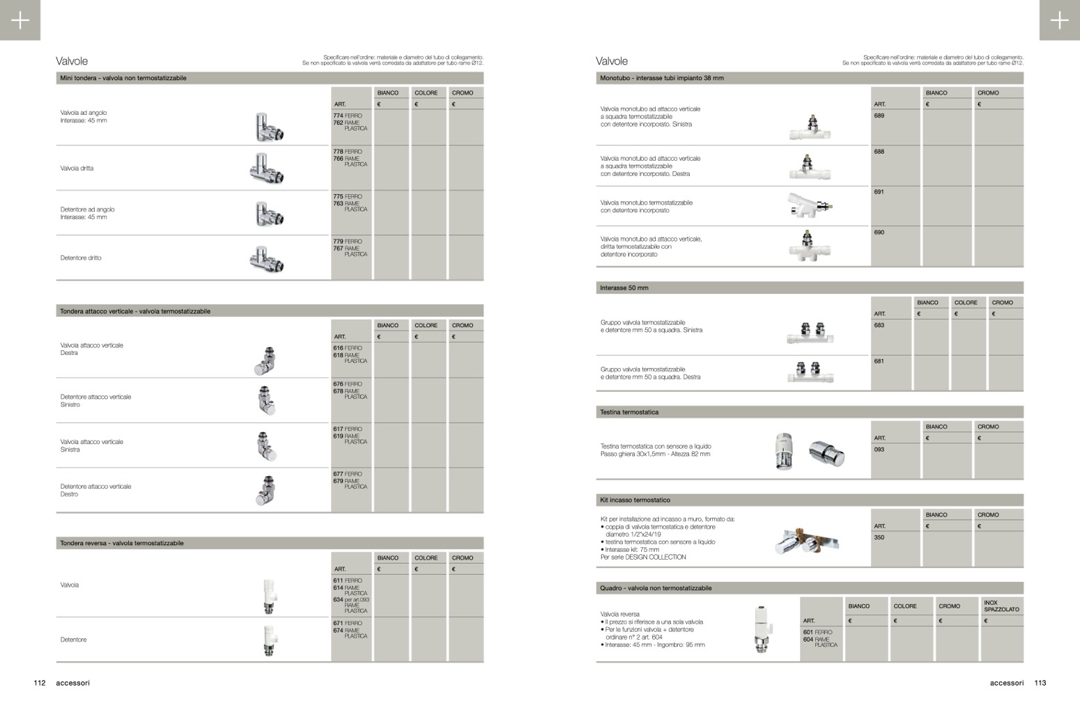• Il prezzo si riferisce a una sola valvola