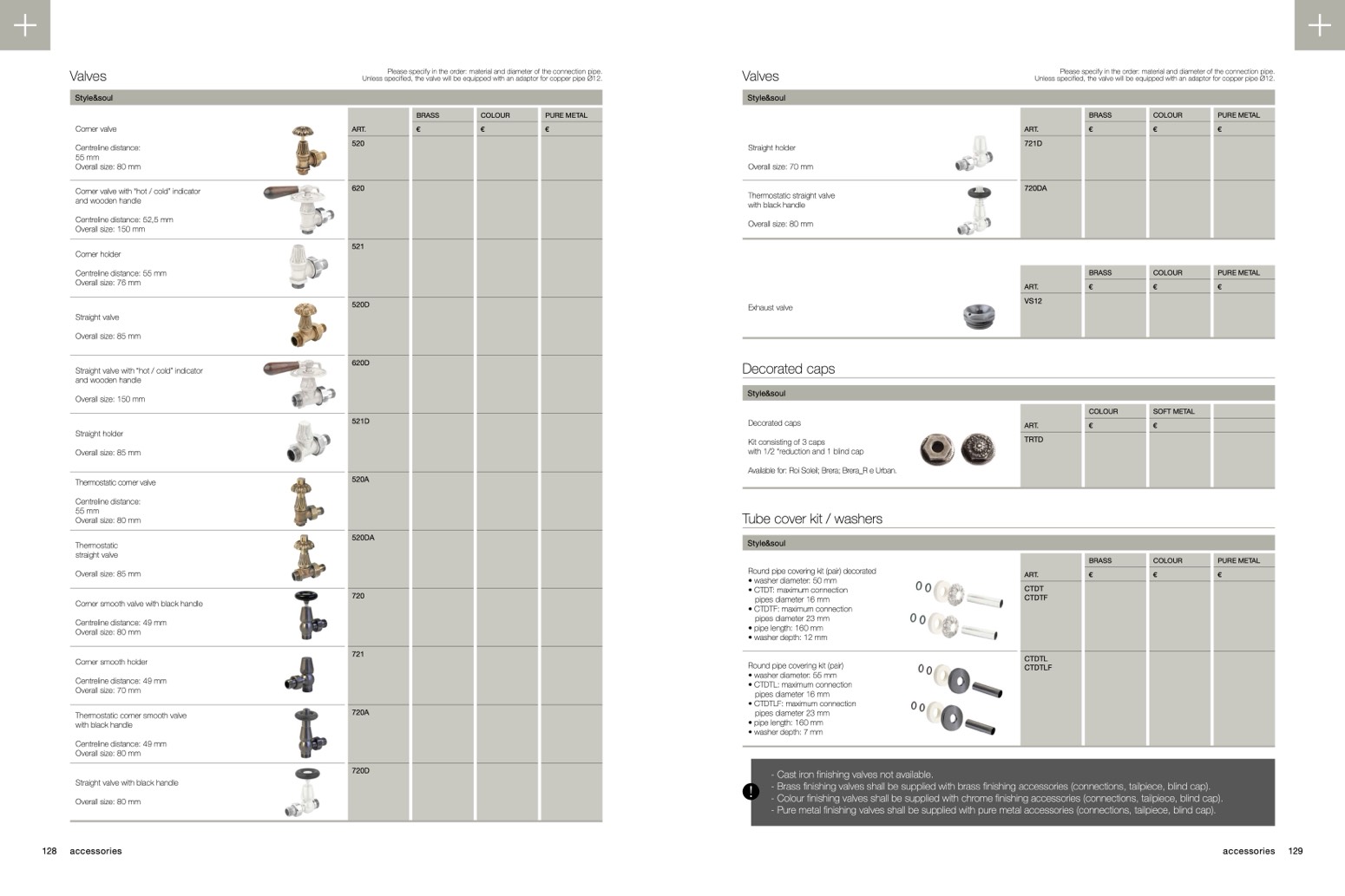 - Pure metal finishing valves shall be supplied with pure metal accessories (connections, tailpiece, blind cap).