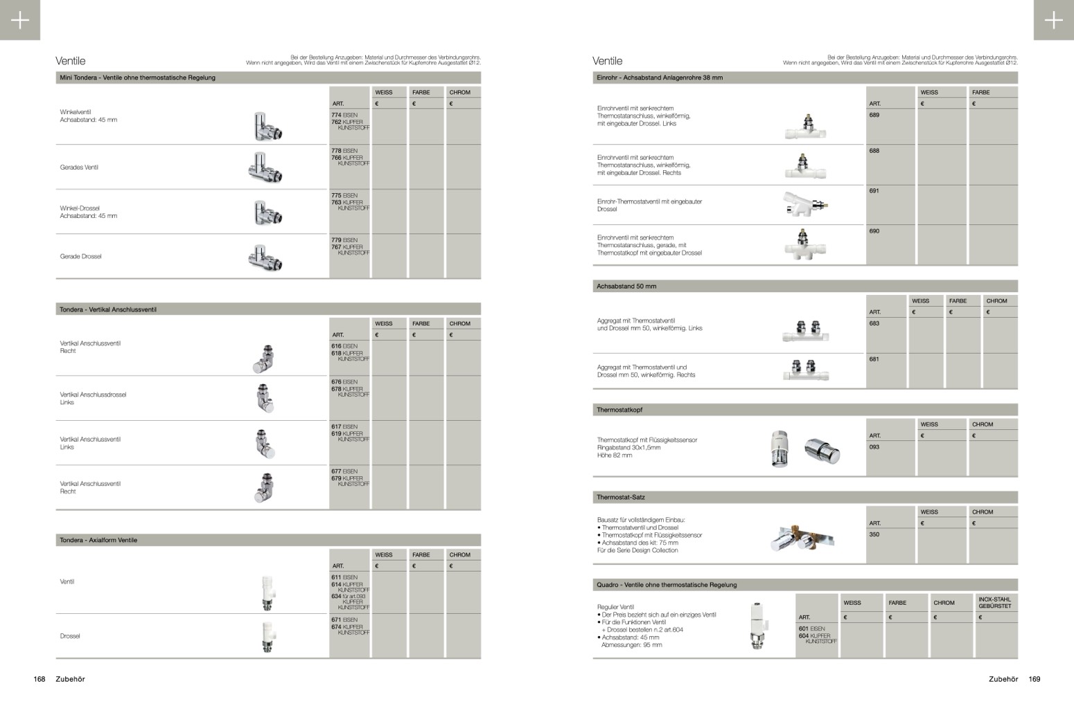 Mini Tondera - Ventile ohne thermostatische Regelung