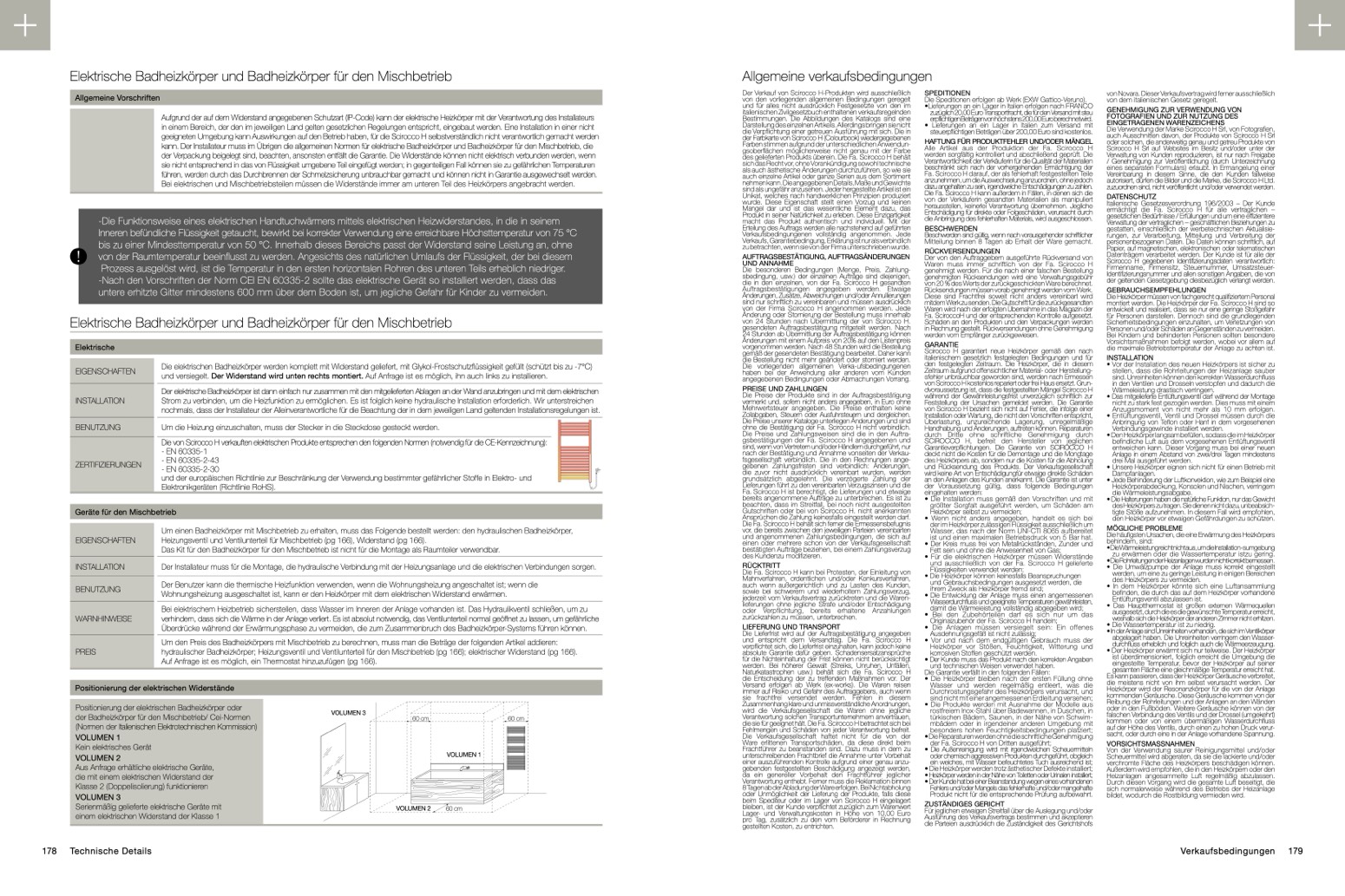 hydraulischer Badheizkörper; Heizungsventil und Ventilunterteil für den Mischbetrieb (pg 166); elektrischer Widerstand (pg 166).