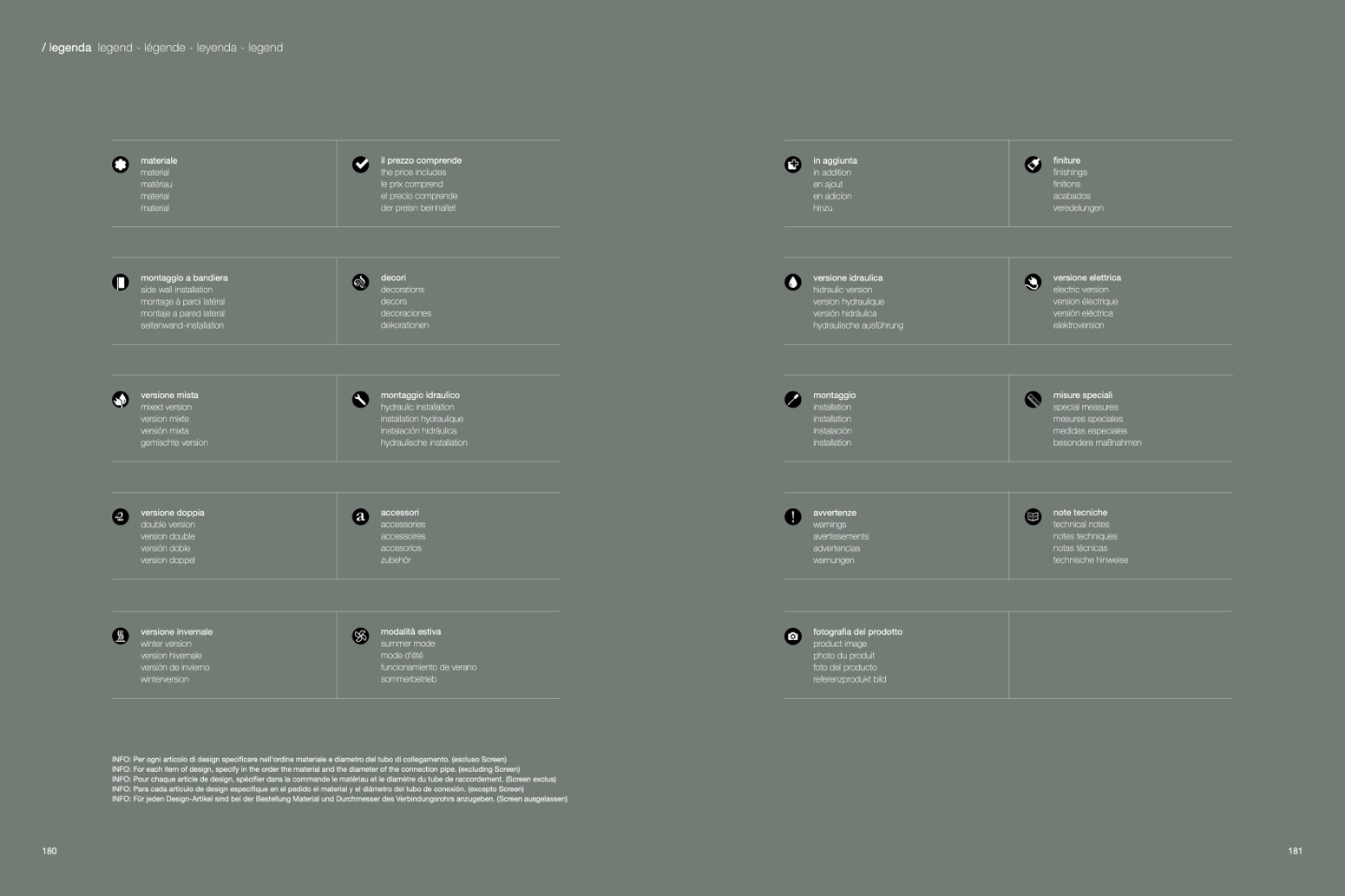 INFO: Para cada artículo de design especifique en el pedido el material y el diámetro del tubo de conexión. (excepto Screen)