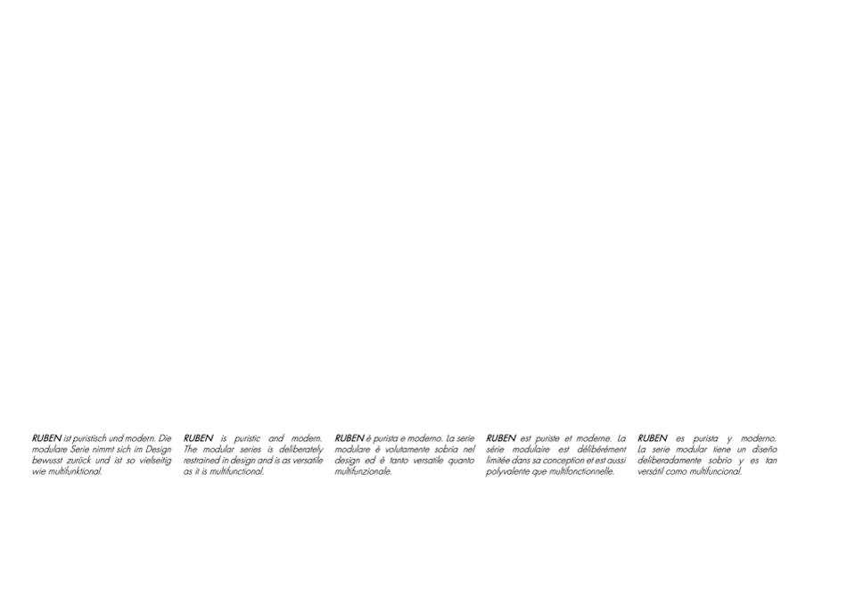 RUBEN ist puristisch und modern. Die RUBEN is puristic and modern. RUBEN è purista e moderno. La serie RUBEN est puriste et moderne. La RUBEN es purista y moderno.