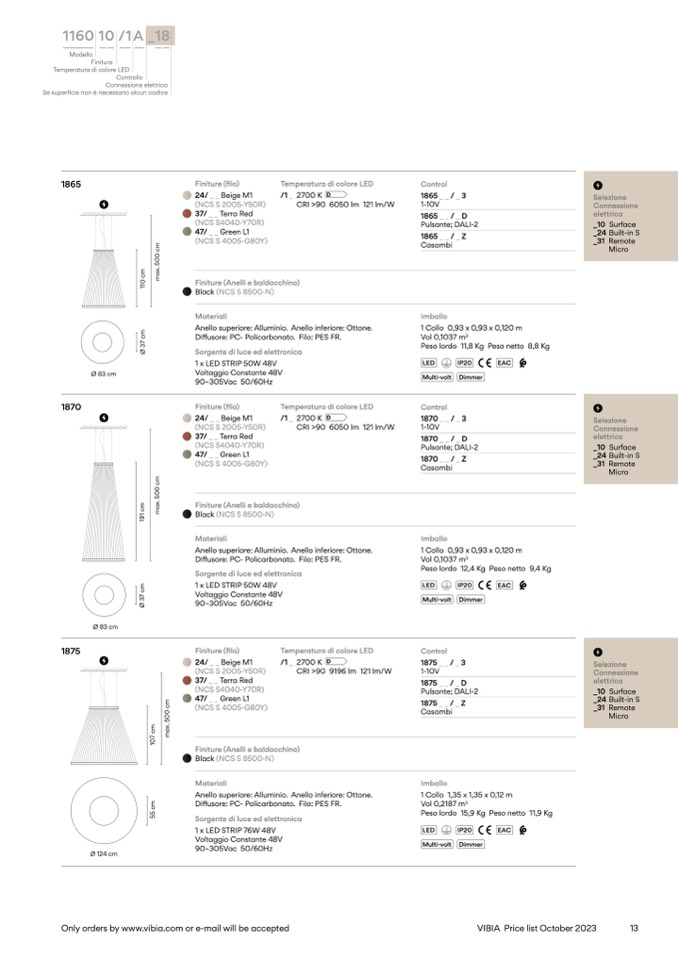 Only orders by www.vibia.com or e-mail will be accepted