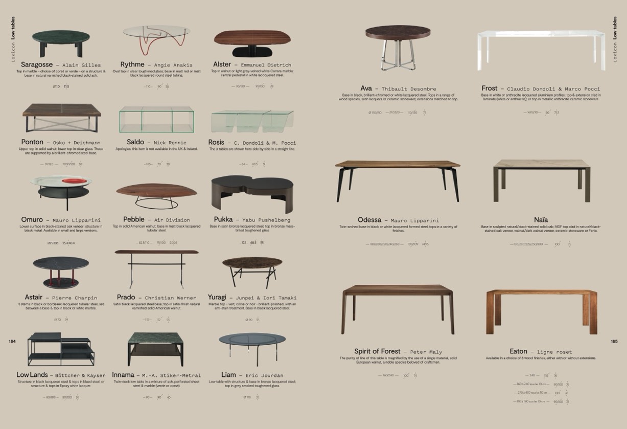 Base in black, brilliant-chromed or white lacquered steel. Tops in a range of