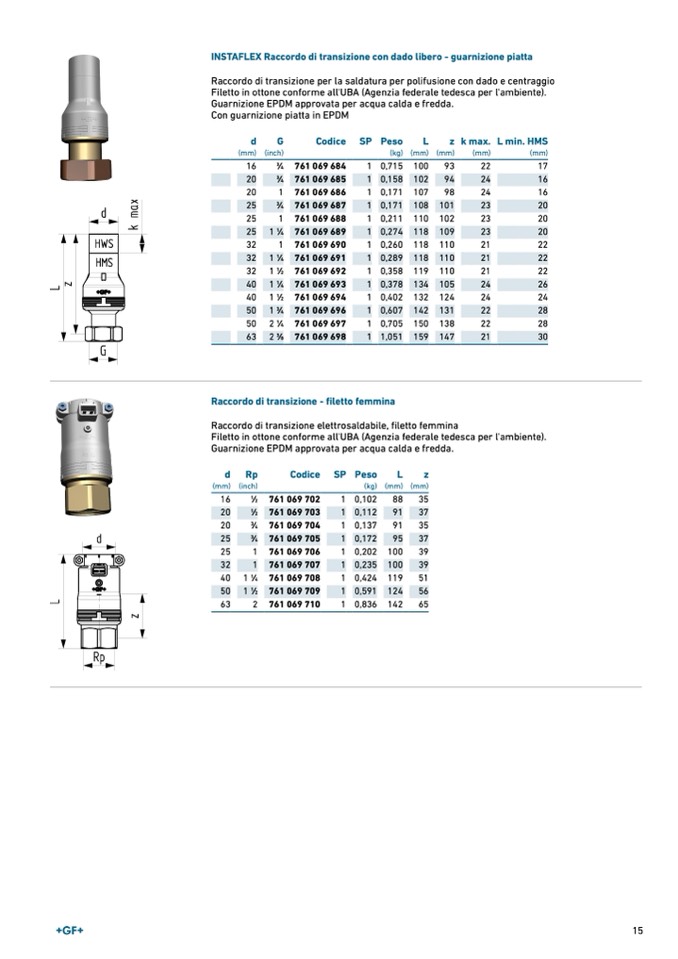 Raccordo di transizione elettrosaldabile, filetto femmina