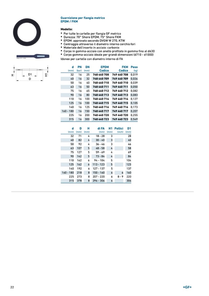 Durezza: 70° Shore EPDM, 75° Shore FKM