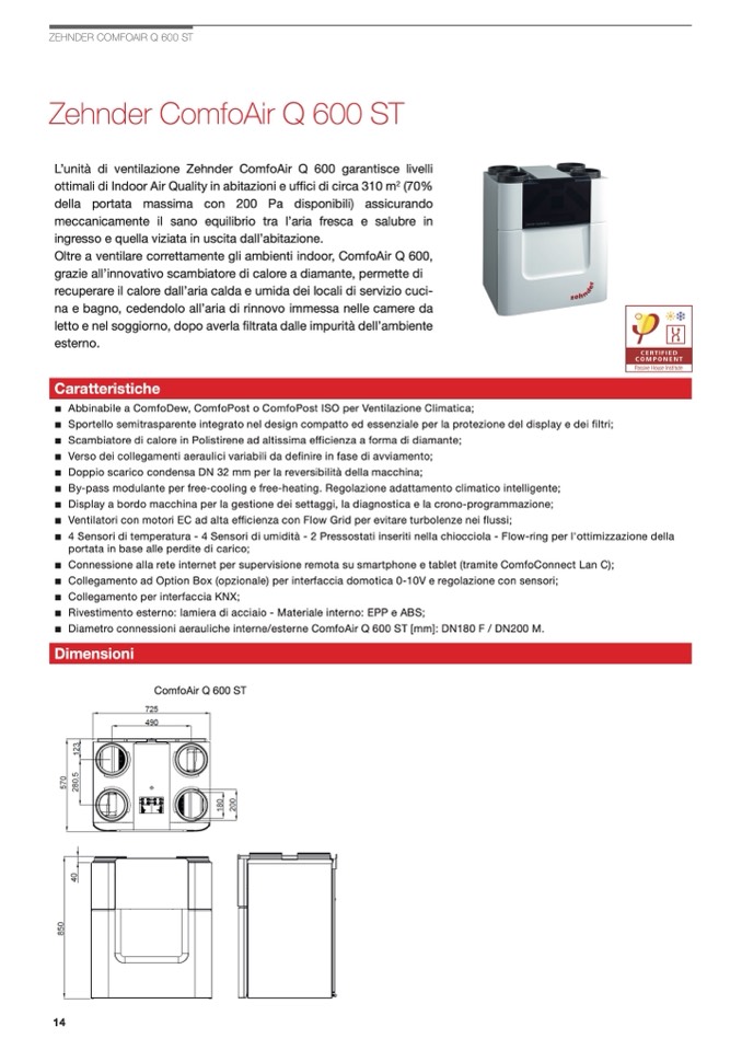 L’unità di ventilazione Zehnder ComfoAir Q 600 garantisce livelli